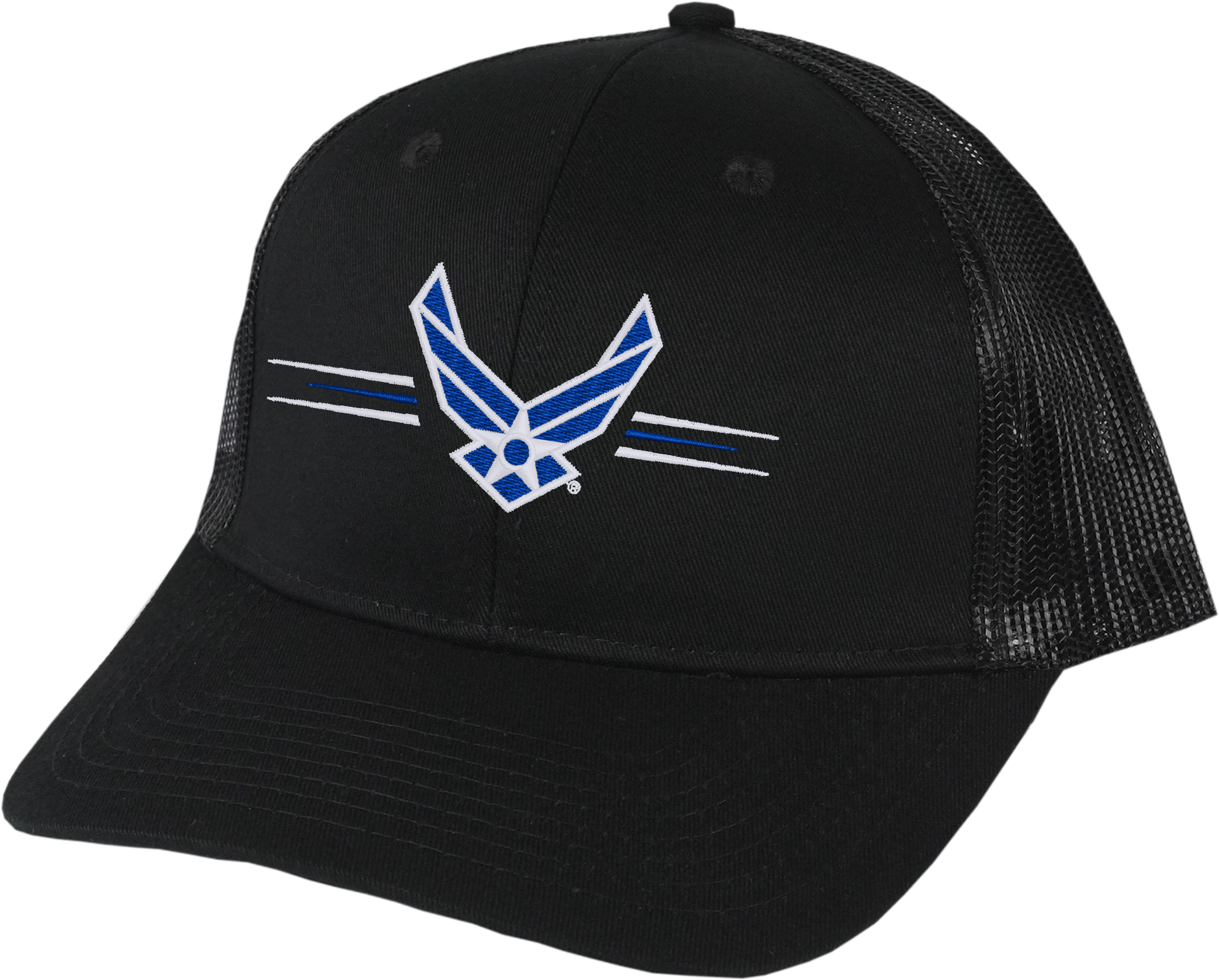 Our Air Force Ball Cap is a fully adjustable 5 panel cap with the design embroidered directly on the cap.