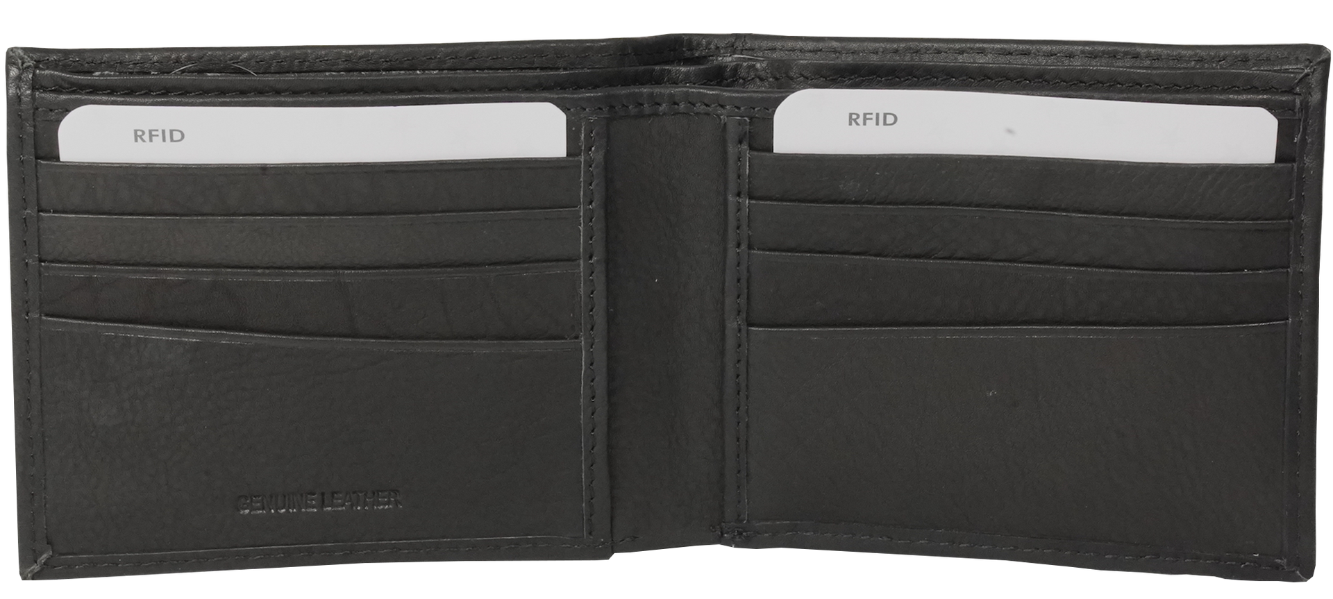 Our US Air Force tri-fold wallet is made of genuine leather and is embossed with the Air Force Logo. It has a clear identification window on the inside flap. The inside includes eight storage pockets for cards and the bill compartment is spacious.