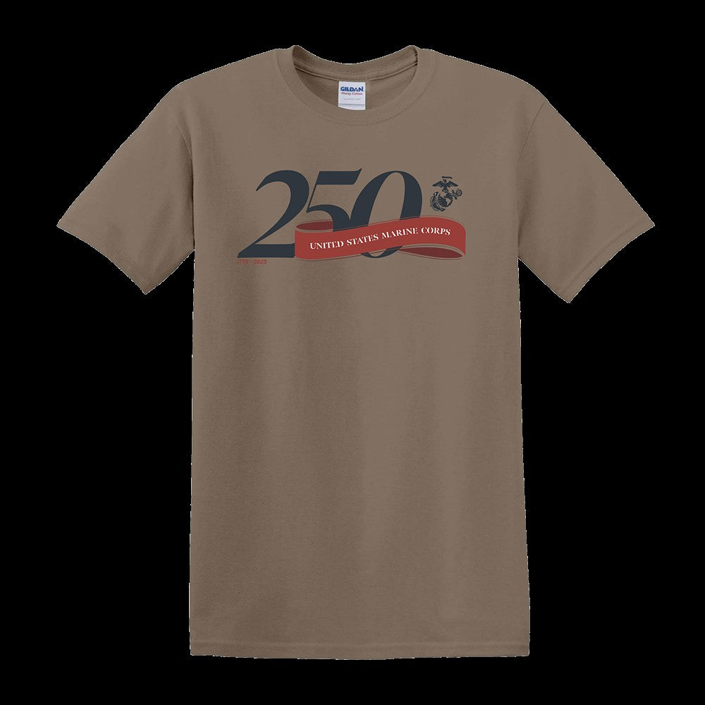 US Marine Corps 250th Anniversary on Coyote Brown T-Shirt