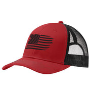 American Flag (Tattered) Embroidered Red & Black Trucker Cap