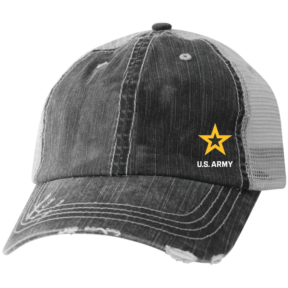New Army Star Embroidered Front Black Mesh Ball Cap