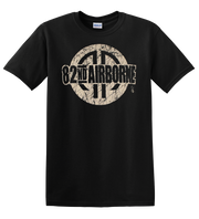 82nd Airborne Circle Design Distressed Cut Out on Black T Shirt