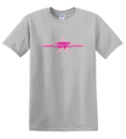 ARMY WIFE over Star Flanked with Scroll Design in PINK on Grey T Shirt