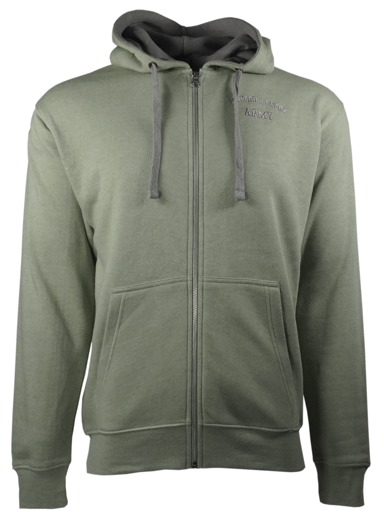 United States Army Left Chest Embroidery on Fleece Zip Up Hoodie