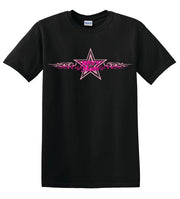 NAVY MOM over Star Flanked with Scroll Design on Black T Shirt