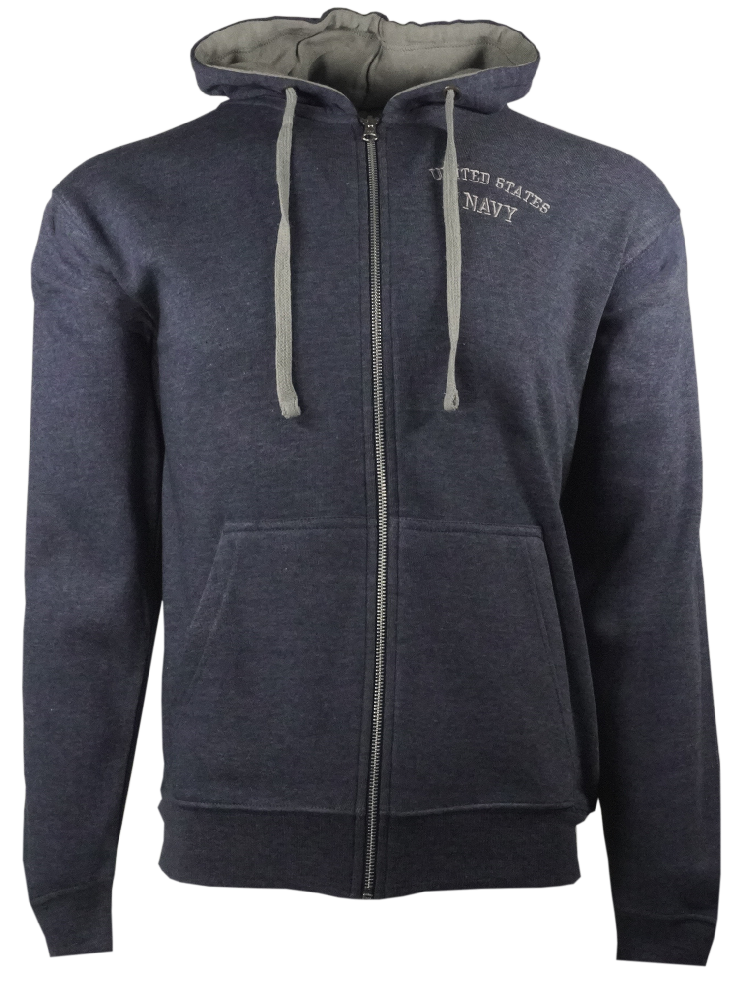 United States Navy Left Chest Embroidery on Fleece Zip Up Hoodie