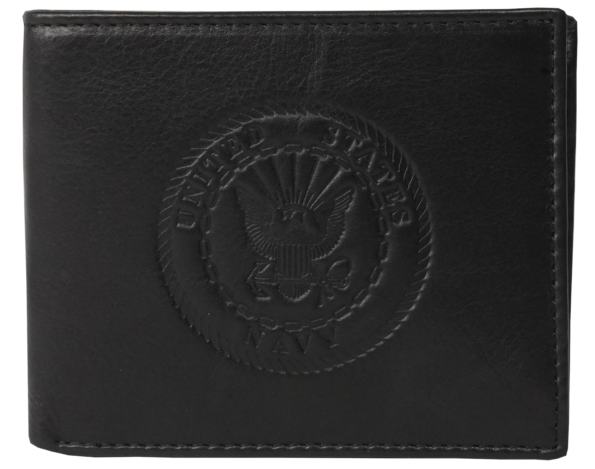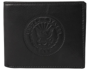 US Navy Crest Bifold Embossed Black or Brown Wallet