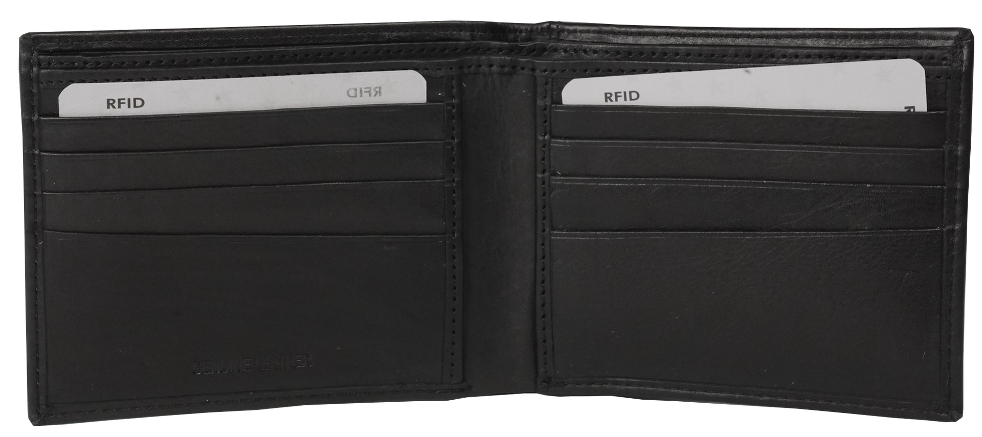 Our US Navy Bifold wallet is made of genuine leather and is embossed with the Navy Crest. It has a clear identification window on the inside flap. The inside includes eight storage pockets for cards and the bill compartment is spacious.