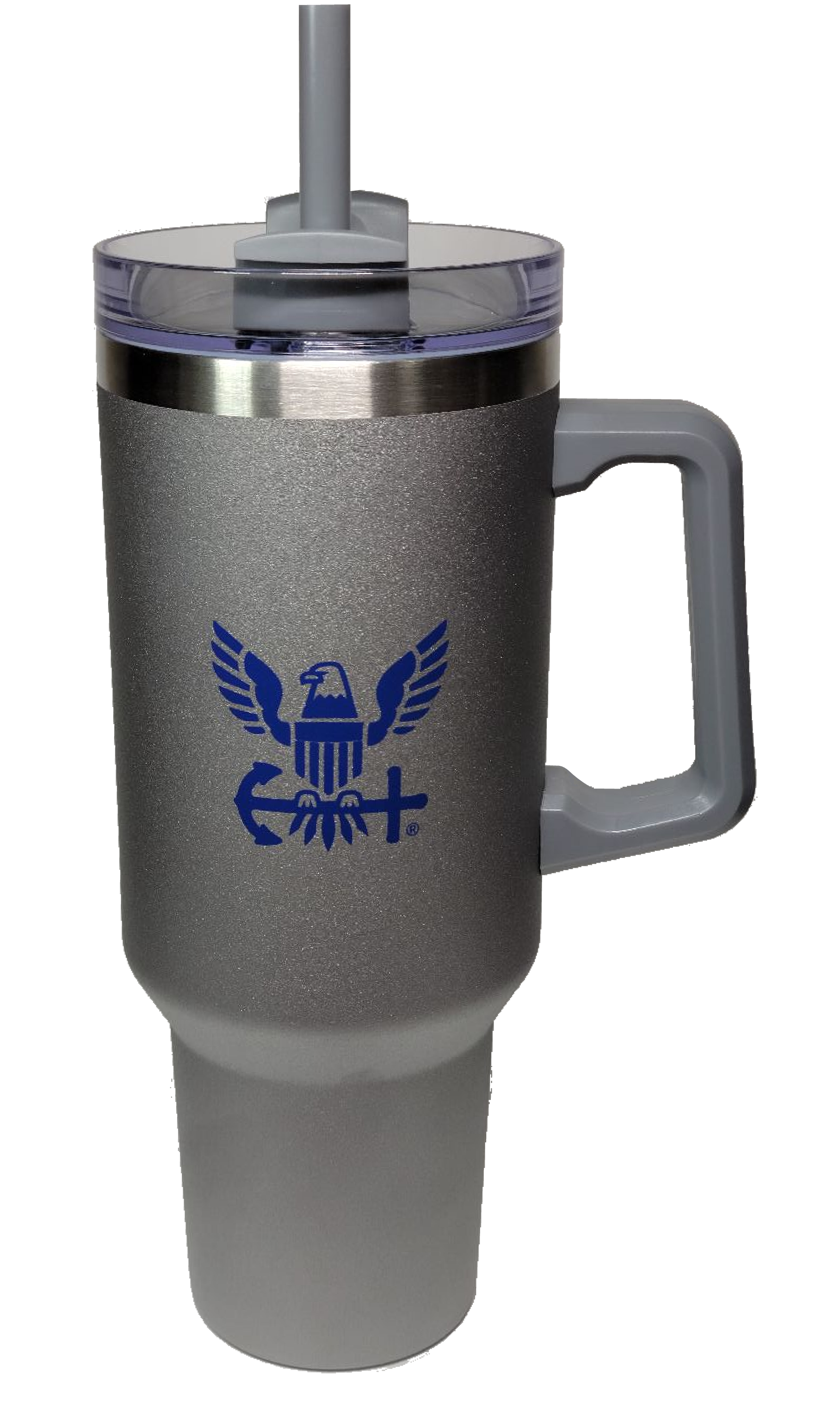 US Navy Icon Logo on 40oz Double Wall Tumbler with Handle