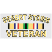 Our Desert Storm Veteran Ribbon Decal is made of durable mylar and is UV protected against fading and cracking. Made in the USA..