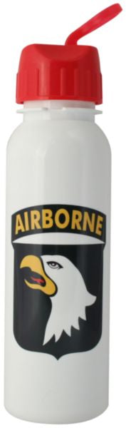 101st Airborne Logo on 24 oz. Red Lid White Water Bottle