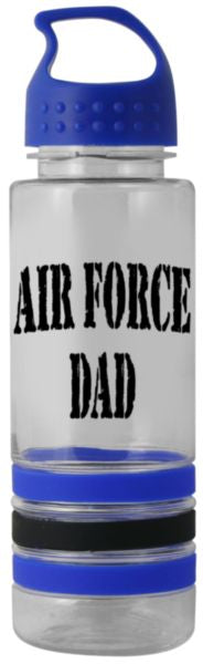 AIR FORCE DAD Letters on Black Imprint on 24 oz. striped with Silicone Bracelets Water Bottle.