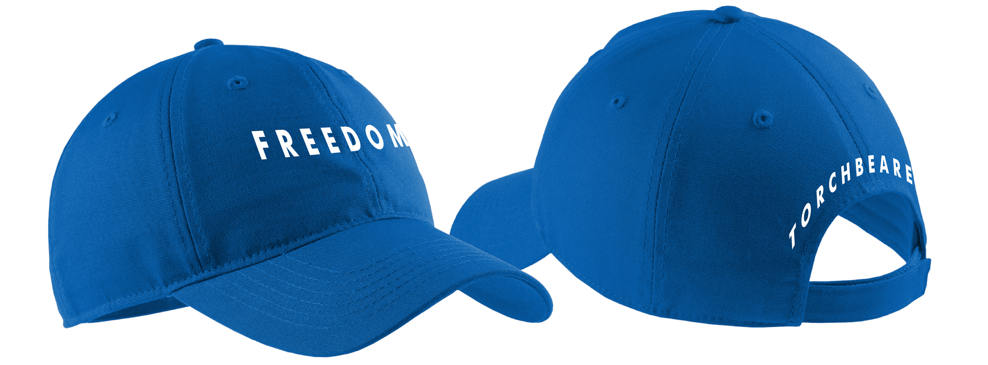 Our Freedom - Torchbearer Charlie Kirk Commemorative Ball Cap is a fully adjustable 5 panel hat, with the design embroidered directly on the hat, and comes in Royal Blue or White